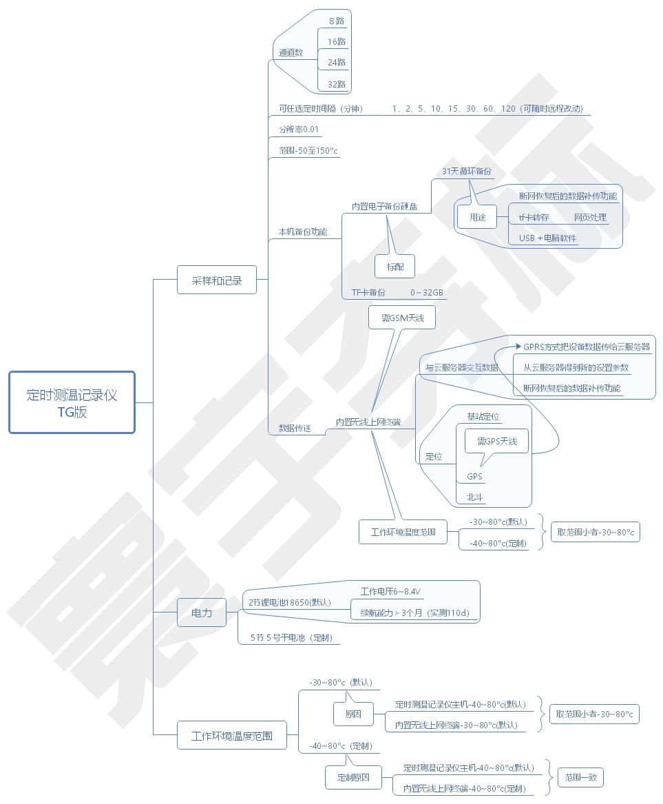 是无线物联网版的定时测温记录仪 最新升级: ●新外壳的TG 设备增强了防水性能和软、硬件的可靠性、新增了防水检测等新功能。它的使用方式和以前版本的基本相同,但是也有不一样的地方。 请点击《详情页 》 ●为了尽可能提高防水性能,新版TG-BL型号的设备,数据冗余的备用功能中的数据转存功能,改用了蓝牙方式。 蓝牙是一种近程无线电,通过蓝牙的方式传输数据,就不需要像以前那样需要有裸露的TF卡插座了, 这样设备几乎所有的的电子元器件都不用裸露在外,因此防水性能或稳定性会进一步提升。请点击《详情页》 |