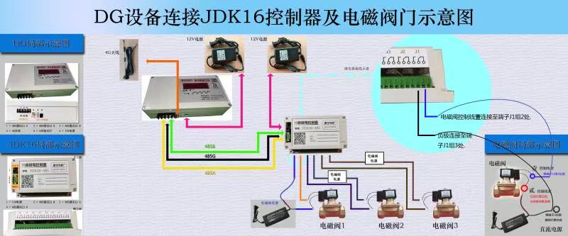 《DG设备连接JDK16控制器及电磁阀门示意图》